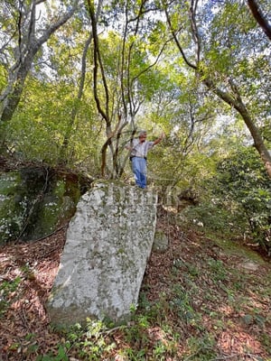 Das Grundstück führt am hinteren Ende in einen Hügel hinein. Mit einem Wäldchen, Felsen und Wegen.
