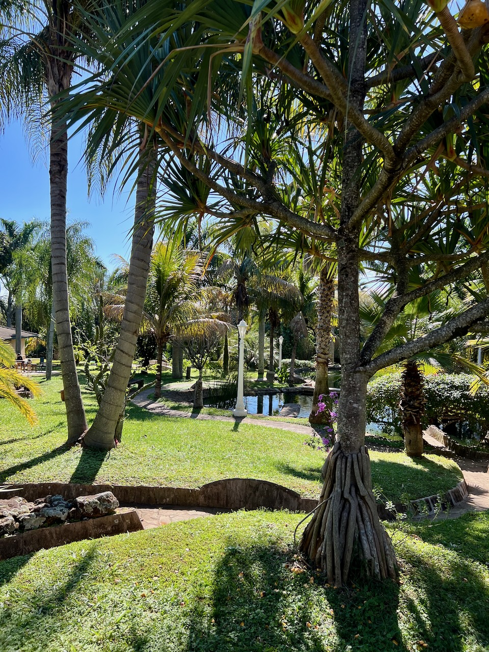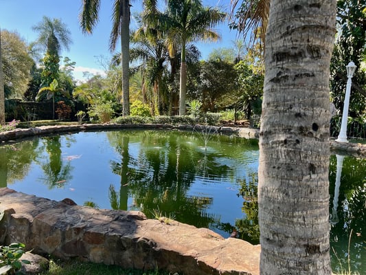 Ein tropisches Paradies: Gartenanlage mit Lagune und exotischer Vielfalt