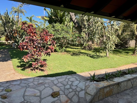 Das Mietobjekt befindet sich auf einem traumhaft gepflegten Grundstück, das wie ein kleiner botanischer Garten wirkt. Die üppige Vegetation mit Palmen, blühenden Sträuchern, alten Bäumen und tropischen Pflanzen schafft eine einzigartige Umgebung zum Entspannen und Wohlfühlen.